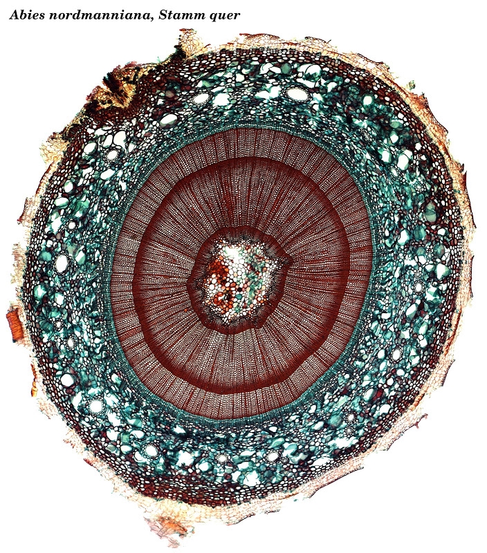 Abies nordmanniana - Stamm quer, gefärbt mit Etzold Grün
