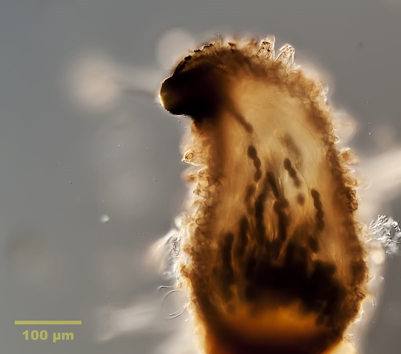 Vorsichtig rauspulen unter dem Stereo-Mik, und dann unters Mikroskop...