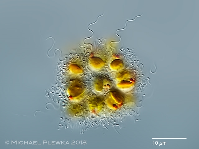 1. Die Goldalge Synura sphagnicola, erkennbar an den roten Öltröpfchen: