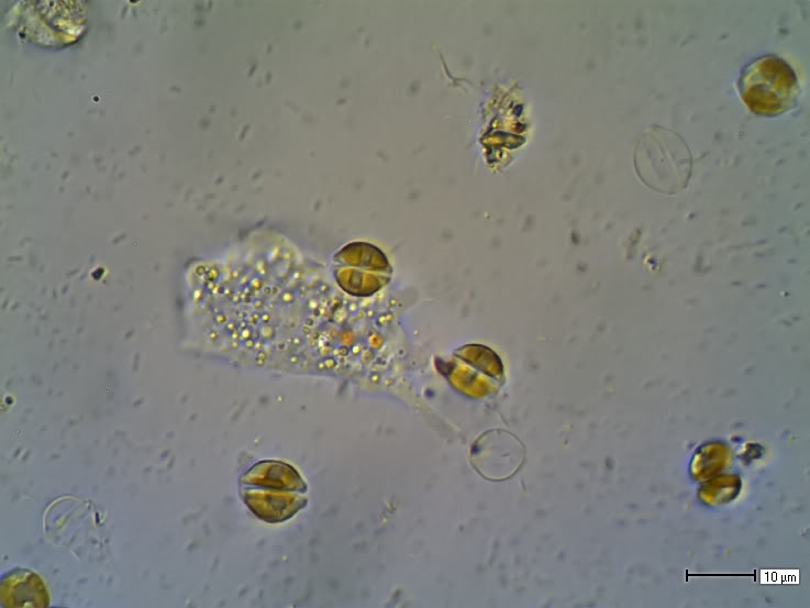 Was die braunen bilateralsymmetrischen Organismen betrifft, habe ich noch gar keine gute Idee. Eine Kieselalge wird es doch nicht sein?