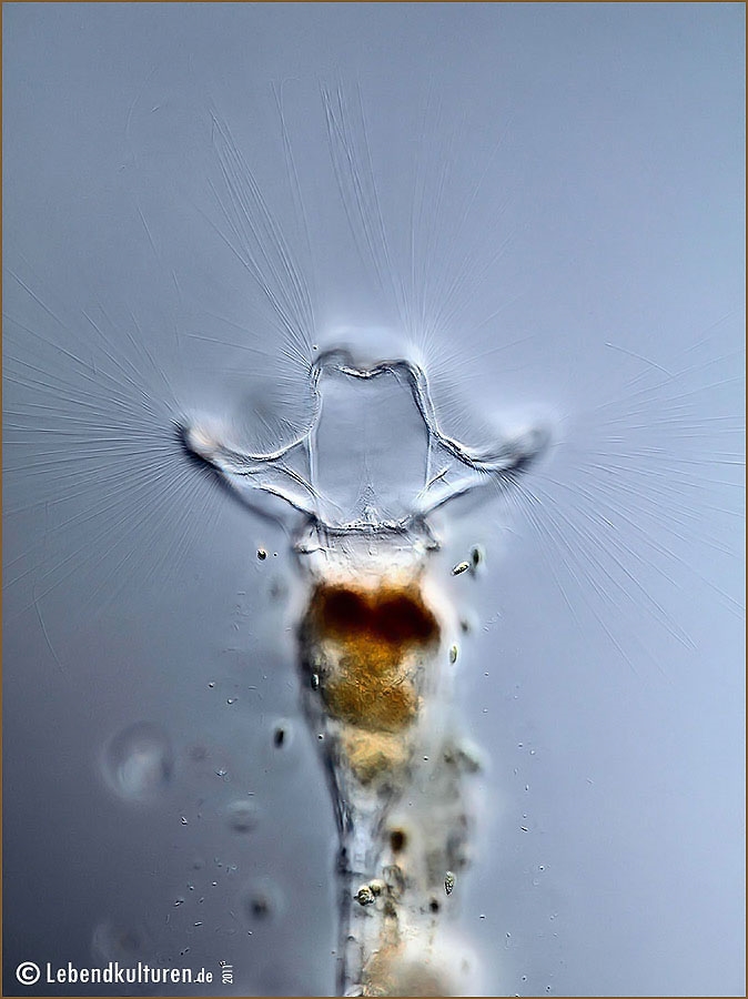 Im Hellfeld sind die Wimperborsten nur mit stark zugezogener Aperturblende erkennbar.