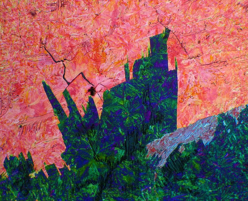 Beim Drehen von Polarisator, Hilfsobjekt und Präparat (unabhängig voneinander!) ergeben sich ganz viele Farbzusammenstellungen, was die Bildgestaltung erst richtig reizvoll macht. Ich gehe immer mal wieder gerne an meine alten Präparate, sofern sie noch gut sind, zur Abwechslung. Dieses ist 16 Monate alt.