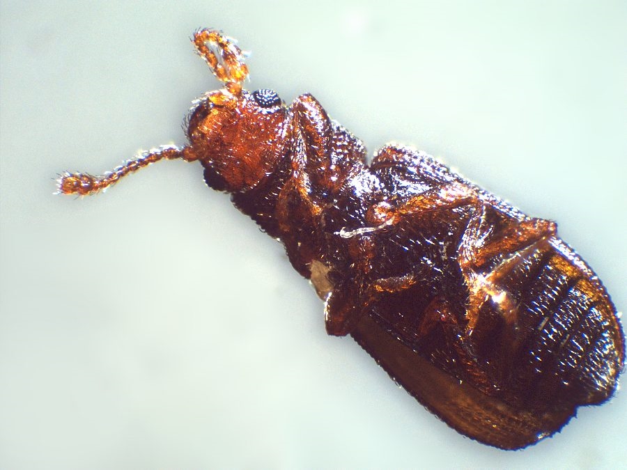 Philothermus evanescens ist es ganz sicher nicht. Nach wie vor tendiere ich zu Berginus tamarisci (Mycetophagidae), wobei diese Art in Deutschland bisher nur im Südwesten bekannt ist (Neuankömmling aus dem Mittelmeergebiet). B. tamarisci wird 1,7 mm lang.