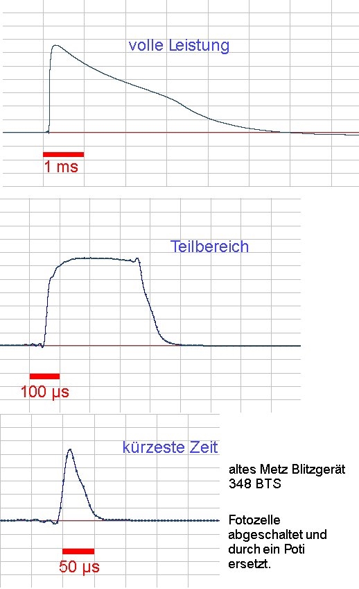 Nachfolgend die damit gemessenen Blitzzeiten eines alten "Thyristor-Blitzgerätes".