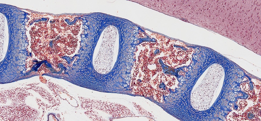 HISTOLOGIE: Wirbelsäule mit Rückenmark und Wirbelkörper eine Junge Maus