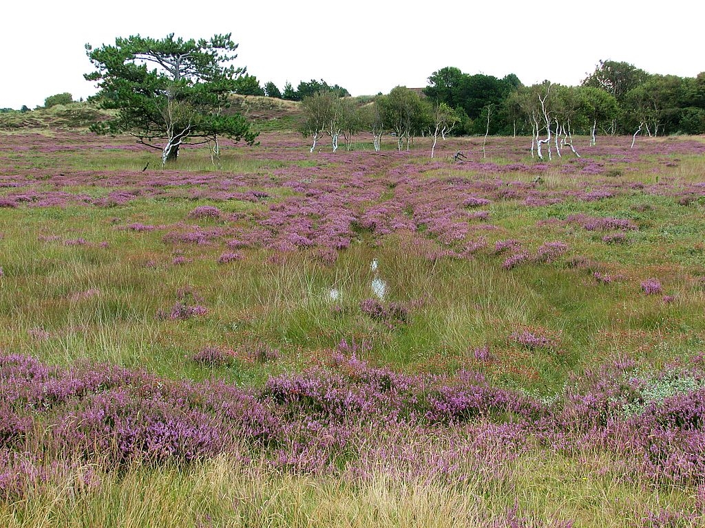 Bild 1: ein typischer Standort der Besenheide auf Römö mit einzelnen Birken und Kiefern
