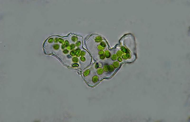 Allerdings scheint es da - wie Angies zweites Bild zeigt - durchaus Unterschiede zu geben: rechts eher sattes grün und kompakte Chloroplasten, links krisselig und von blasserer Farbe.