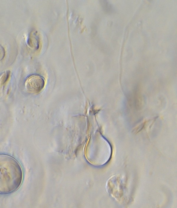 In der Probe befanden sich vereinzelt explodierte Nesselkapseln, anhand derer man sehen konnte, welche enorme Länge ein Nesselfaden aufweisen kann.