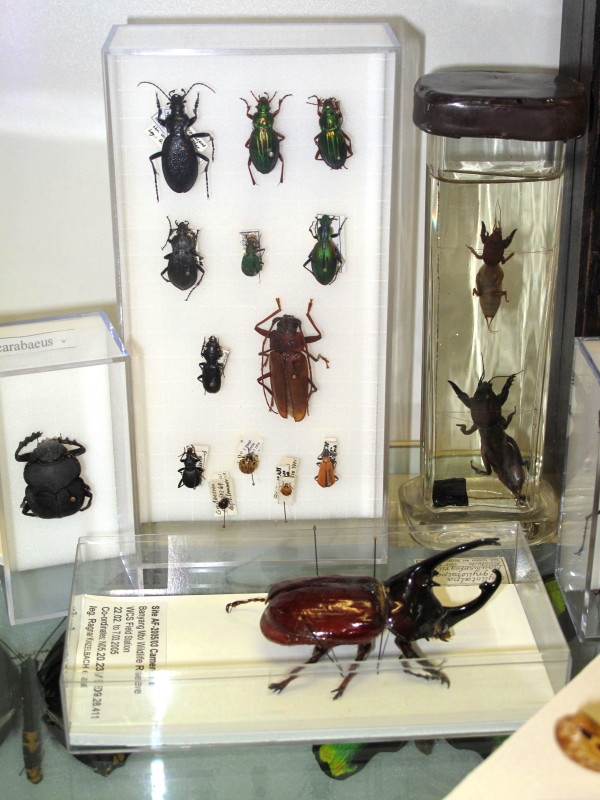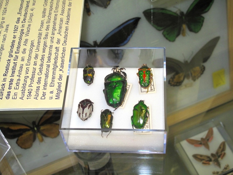 Kuriosa wie die größte Perle der Welt mit über 5 kg auf der einen Seite stehen einer Mikrosammlung von Blattläusen in "Standard-Haltung" - was auch immer das ist - gegenüber. Es gibt Lehrreiches wie Beispiele für tierische Rohstoffe mit zu früheren Zeiten z. T. großer wirtschaftlicher Bedeutung: Seide, Cochenille, Schellack, Purpur, Elfenbein... und Schönes: Schmettelinge und Käfer. Ein Scherzkeks hat noch ein Kinderbild in eine Ecke gestellt. :D
