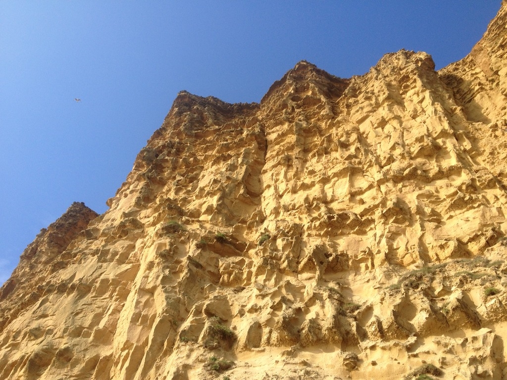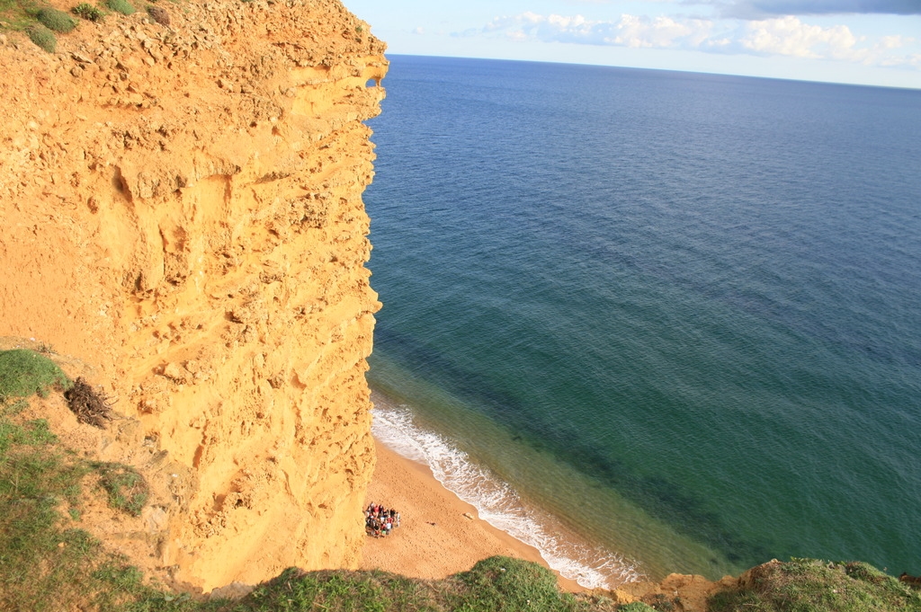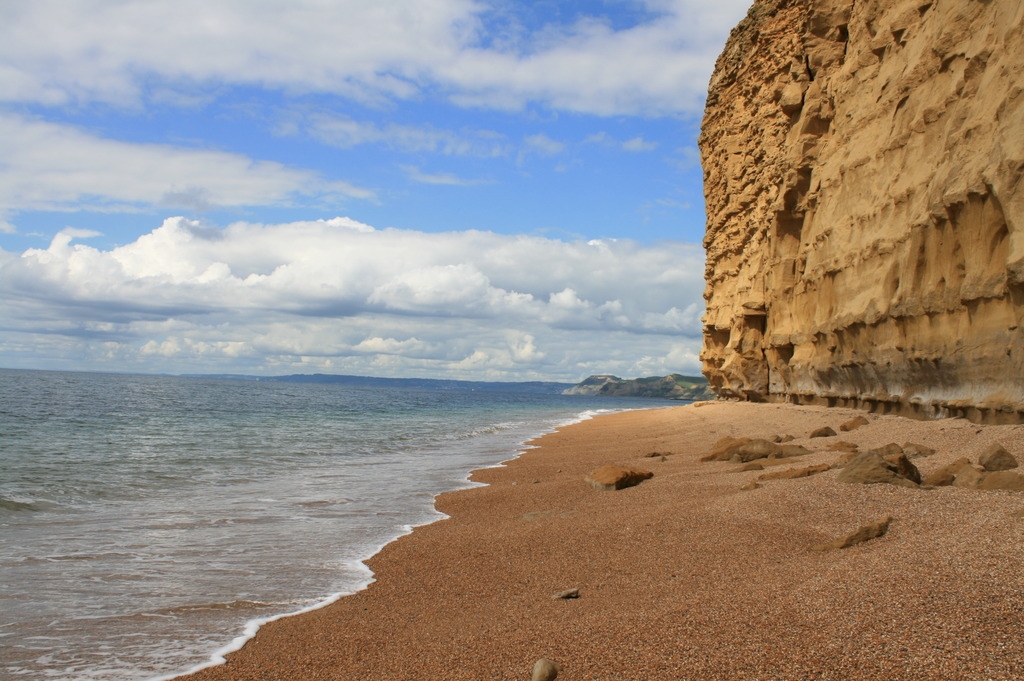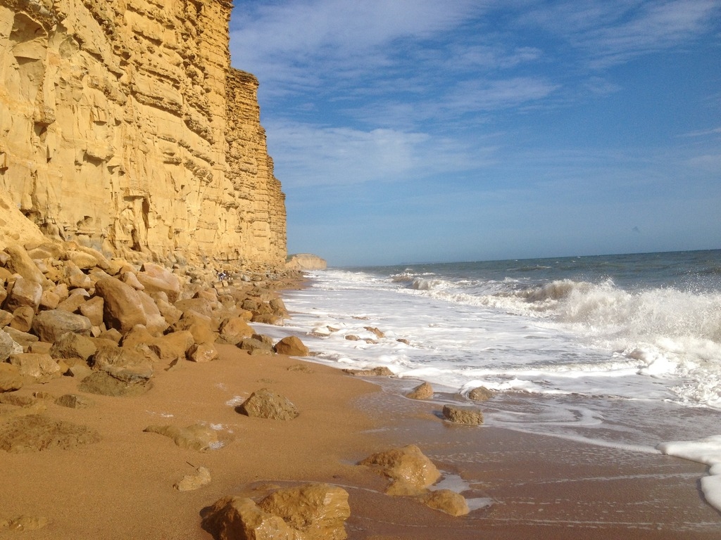 In West Bay ist ein wunderschöner Strand mit goldenen Klippen und recht grobem Sand.