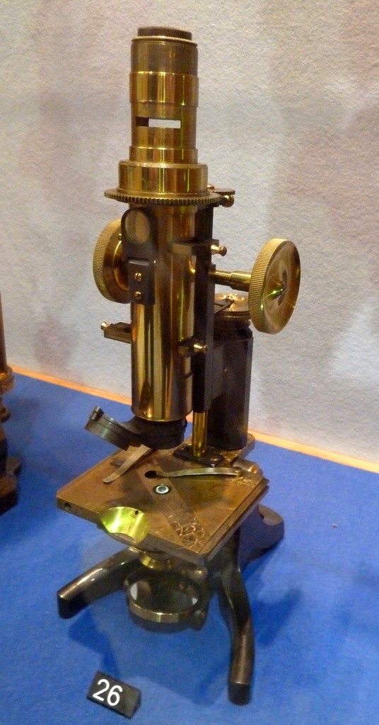 If you noticed, the round tags also have running numbers on top. The curators intend to make a catalogue with detailed historical background and explanation for each instrument. My microscopes in the exhibition, for example: the small Nachet Petite modèle droit (in front of Louis Pasteur), the wooden-cased Withering (wrongly displayed in the semi-folded position) or Sir Ronald Ross' Baker "The Diagnostic" (and many more), all came with a full catalogue giving their full historical background and references. So in due time the serious visitor will be able to follow the exhibition with a detailed catalogue in hand, which I believe will be available in the exhibition hall.