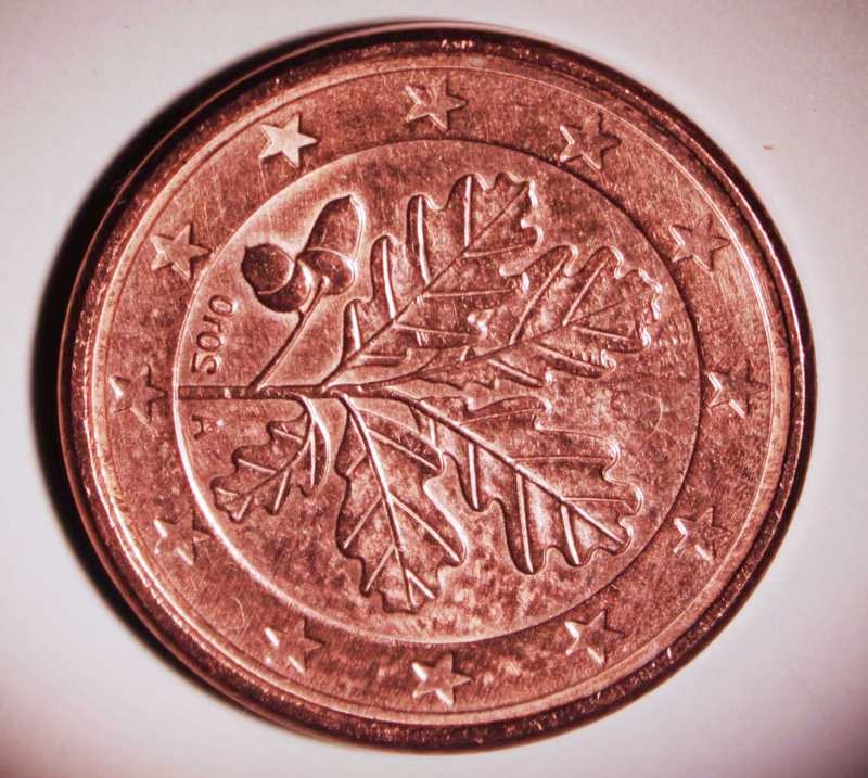 1 Cent, mit oben beschriebener Technik aufgenommen (Vergrößerung ca. 15 x)