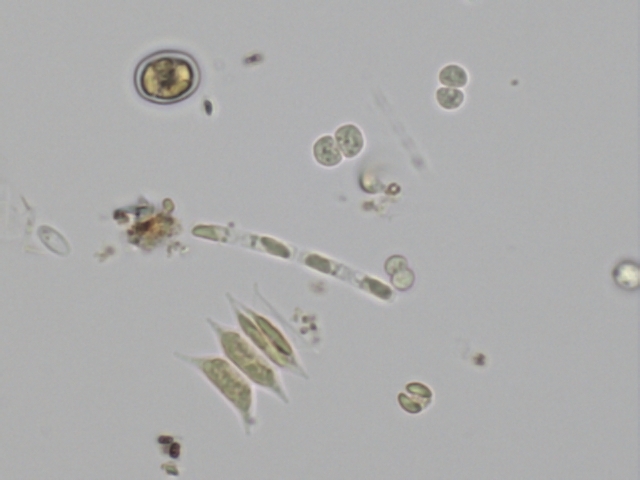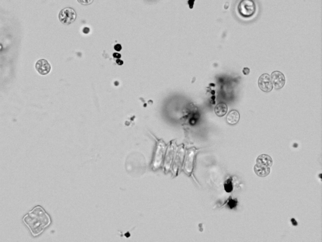 Wenn ich mir das Streupräparat mit dem Zeiss Plan Neofluar 63/0,90 pol anschaue sieht es aus wie auf dem folgenden Foto:
