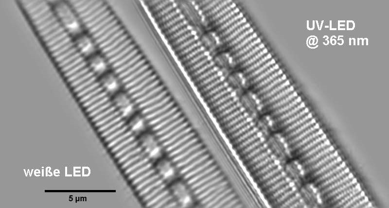 Welcher Informationsgewinn durch die kleine UV-LED gewonnen wird zeigt das folgende Bild eindrucksvoll.