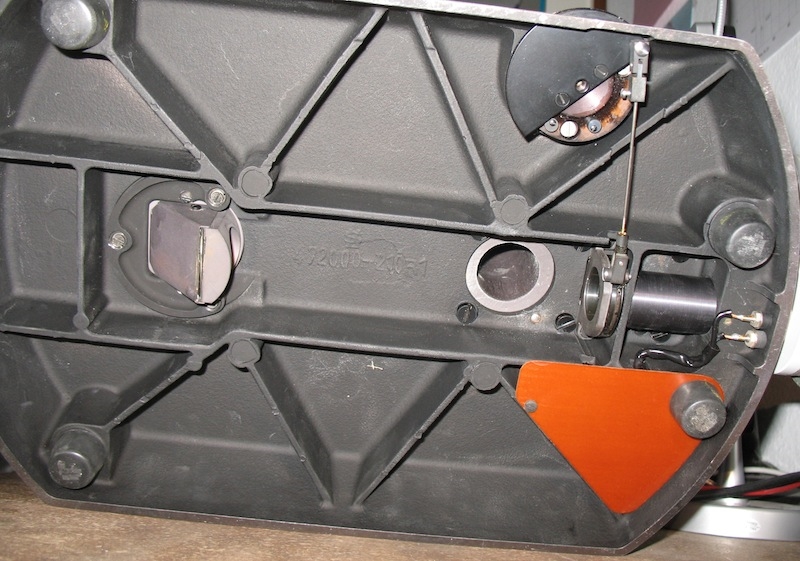 Der LFB-Spiegelstuhl ist über die 3 Schrauben kipp und neigbar. Dafür benötigt man einen Spezialschraubenzieher, weil konzentrisch zur Schraube noch ein Fixierring sitzt, mit dem die Schraube nach erfolgter Justierarbeit festgesetzt werden kann.