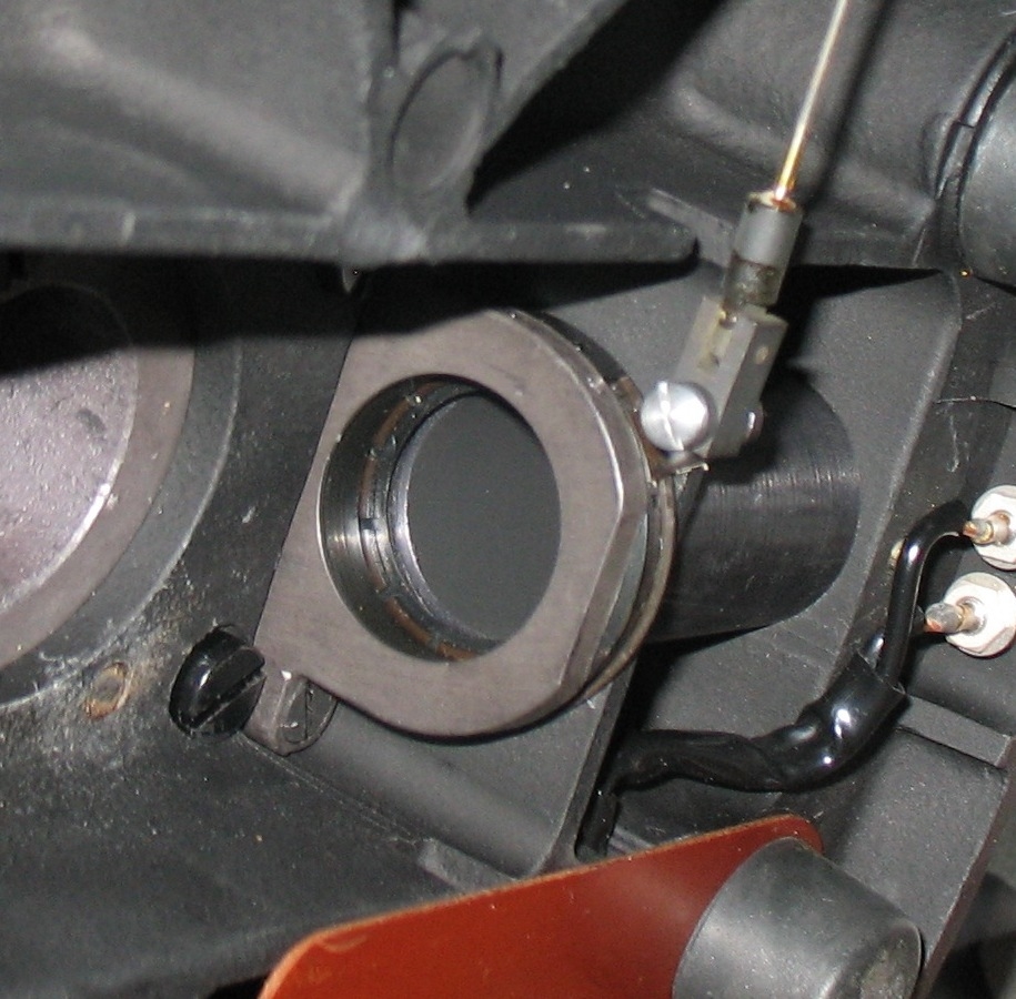 Mittlerweile habe ich eine weitere Variable einführen können, die Hilfslinse des Kondensors scheint nicht exakt in der optischen Achse zu sitzen. Kein Wunder also, dass sich die Zentrierung mit und ohne Hilfslinse unterscheidet. Wie man schön sehen kann, hat irgendeiner der Vorbesitzer des Kondensors die Konterschraube, die die Schraube zur Justage der optischen Achse Schraube in Position hält, ordentlich vergammelt  >:(