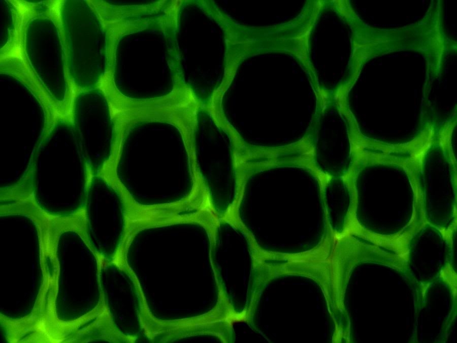 Die folgenden 3 Bilder zeigen eingedeckte, gefärbte Pflanzenschnitte von Robin Wacker, UV-Anregung (erstes und drittes Bild), Blau-Anregung (zweites Bild)