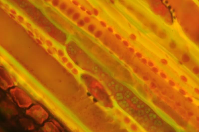 Ich stimme Klaus zu: das Bild 11 ist wirklich klasse, da die Blase hier exakt zwei nebeneinanderliegende Zellen füllt und so die Tüpfelkanäle wunderbar deutlich werden. Könntest Du uns von dem Pärchen noch mal eine größere Aufnahme einstellen?