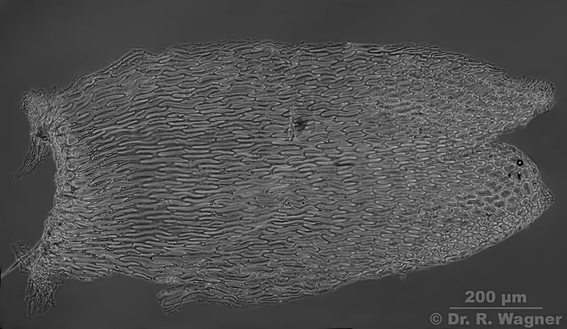 - QS Astblatt. Resorptionsrinne an der Außenseite. Charakteristisch für die Sektion Sphagnum.