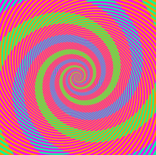Die "blaue" und "grüne" Spirale haben die gleiche Farbe....leider sieht das Auge Farben nicht absolut, sondern interpretiert sie in Bezug auf ihre Umgebung.