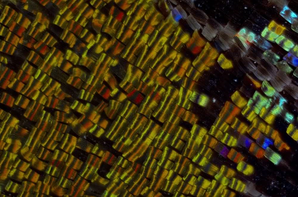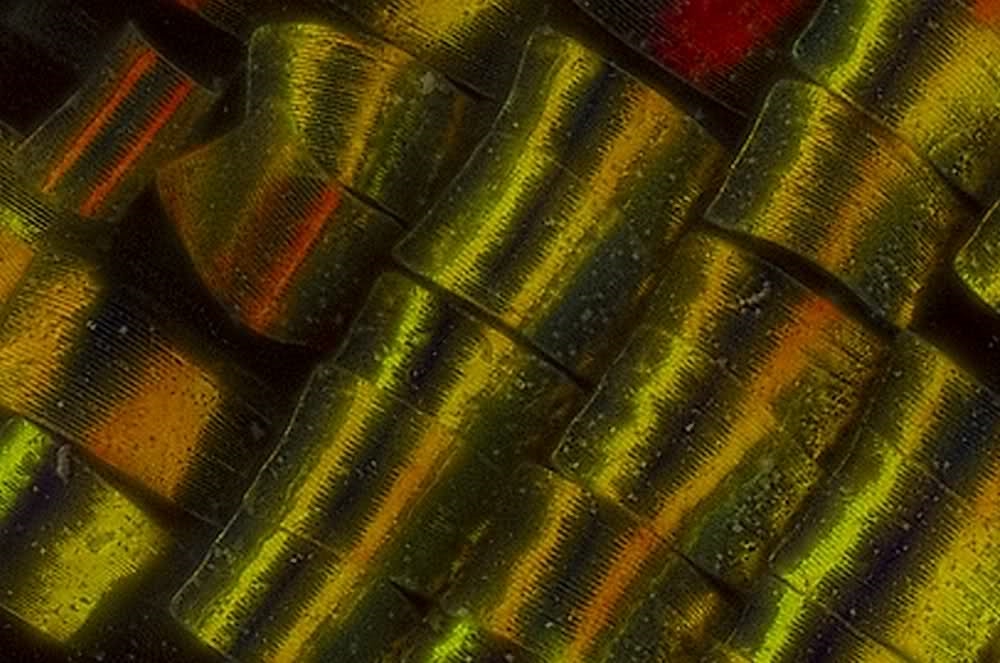 Die hier gezeigten Schmetterlingsschuppen sind sehr kontrastreich (im Gegensatz zu einem Fischembryo in der Eihülle),