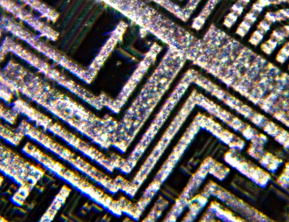 ja Kurts Bilder sind einfach Spitze da gibt es keine Frage. Heute kam hier das Leitz NPL Fluotar 50X/0,85 an und zu meiner besonderen Freude ist es ein Exemplar ohne Deckglas und somit auch als Objektiv für den "Makromaten" sozusagen als maximal machbare Vergrößerung geeignet. Ich habe damit mal auf dem Chip eines 68000 Prozessors herumgestochert und festgestellt, daß es zum Rand hin kräftig unscharf wird. Das ist aber zum Stacken nicht das Problem, zumal ja die ebenfalls heute eingetrudelte DxO Optics Pro 7 so etwas beim "Entwickeln" der RAW Bilder wegrechnen kann.