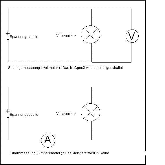 Wie eine Wasseruhr ( ein Amperemeter ist das Gleiche wie in einem Wasserkreislauf die Wasseruhr ). Und natürlich wieder auf richtige Polung achten.