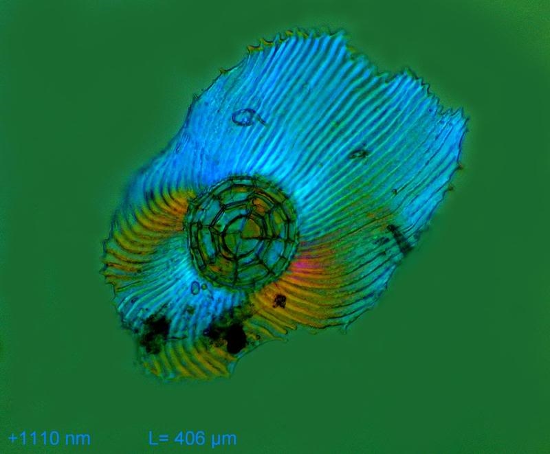 ich habe einfach mit einer Pipette Wasser aus der Rosette entnommen. Man muß dann schon etwas suchen, findet aber manchmal auch z.B. interessante Ciliaten. Die Pol.-Farben gibt es auch bei anderen Strukturen aus Cellulose.