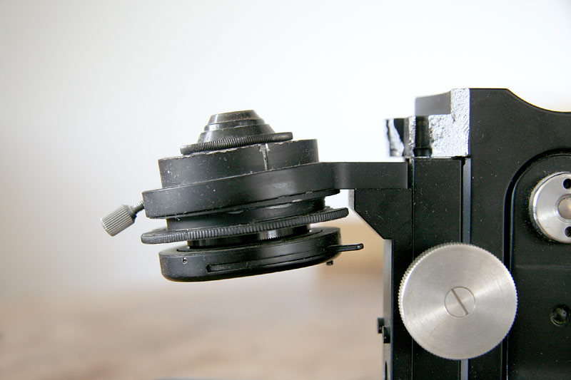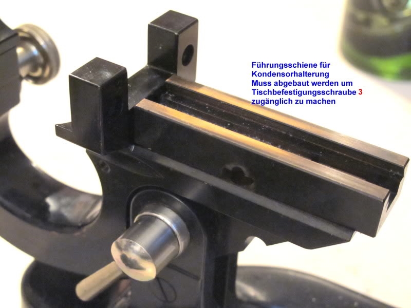 Die Klemmung des Kondensors erfolgte entweder mit Schraube, wie in meinem Beitrag gezeigt, oder mit Exzenter. So wie bei Deinem: