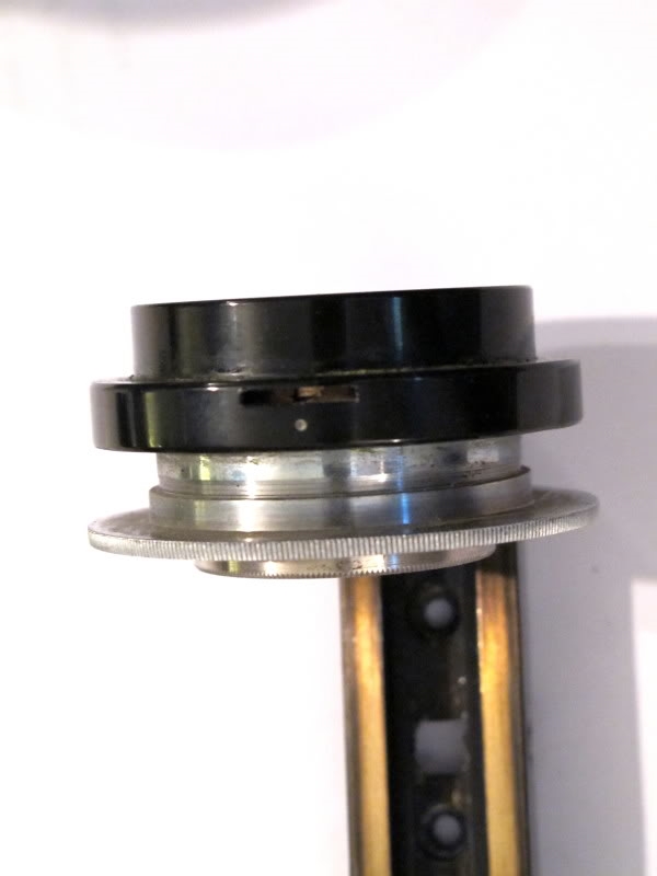 Irgendwie muß der Messingring ja gegen herausfallen bei Herausnahme des Kondensors gesichert sein. Vorstellbar ist auch ein L-Profil des Ringes, was auch eine Erklärung für das Spaltmaß sein könnte.