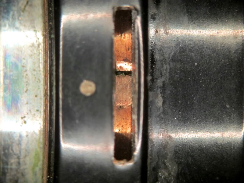Auf dem 4. Bild sieht man den Klemmring (kupferfarben verfälscht!) mit der Vertiefung, in die der Exzenter-Klemmer eingreift. Genau an der Stelle ist der Ring geteilt, wie sich das für einen Klemmring gehört. 5. Bild die Klebepampe, an der Stelle schon abgelöst.