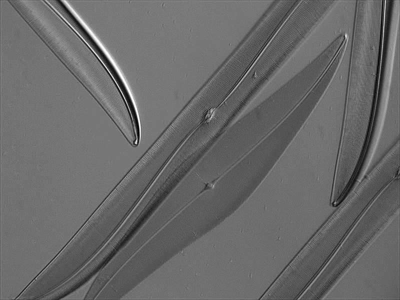Dieses Bild ist mit einem 25er Objektiv aufgenommen, die Gyrosigma wird aufgelöst, die Pleurosigma nur ansatzweise.