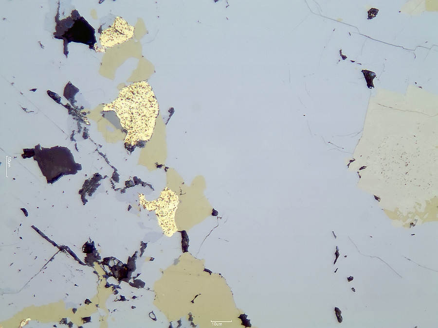 Aus dem Internet und der mir vorliegenden Literatur ist mir keine Aufnahme eines goldhaltigen Erzanschliffes vom Rheinischen Schiefergebirge bekannt.