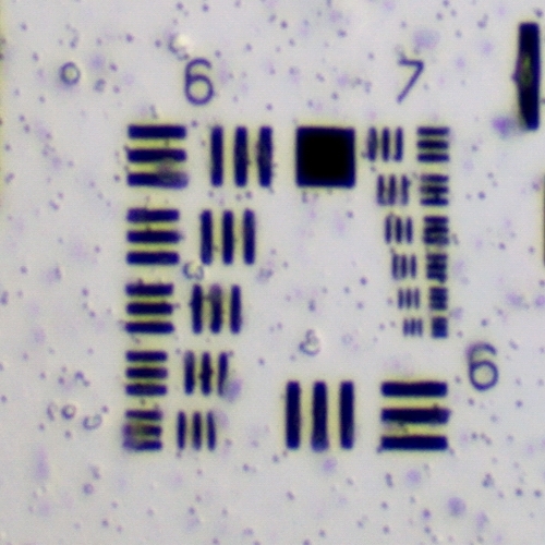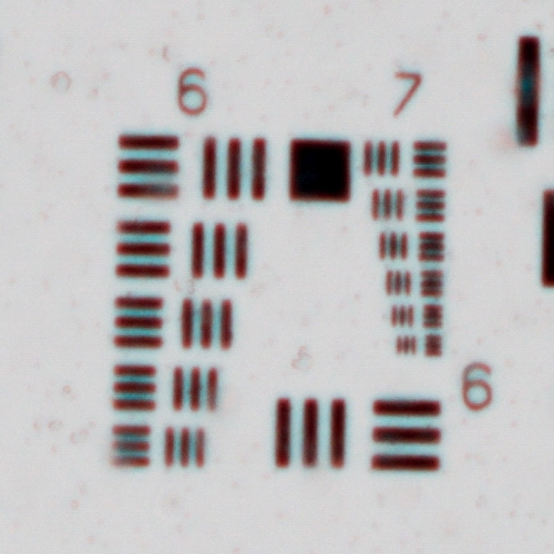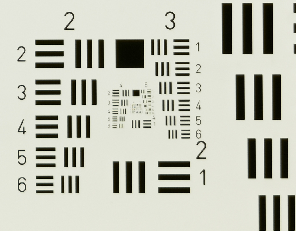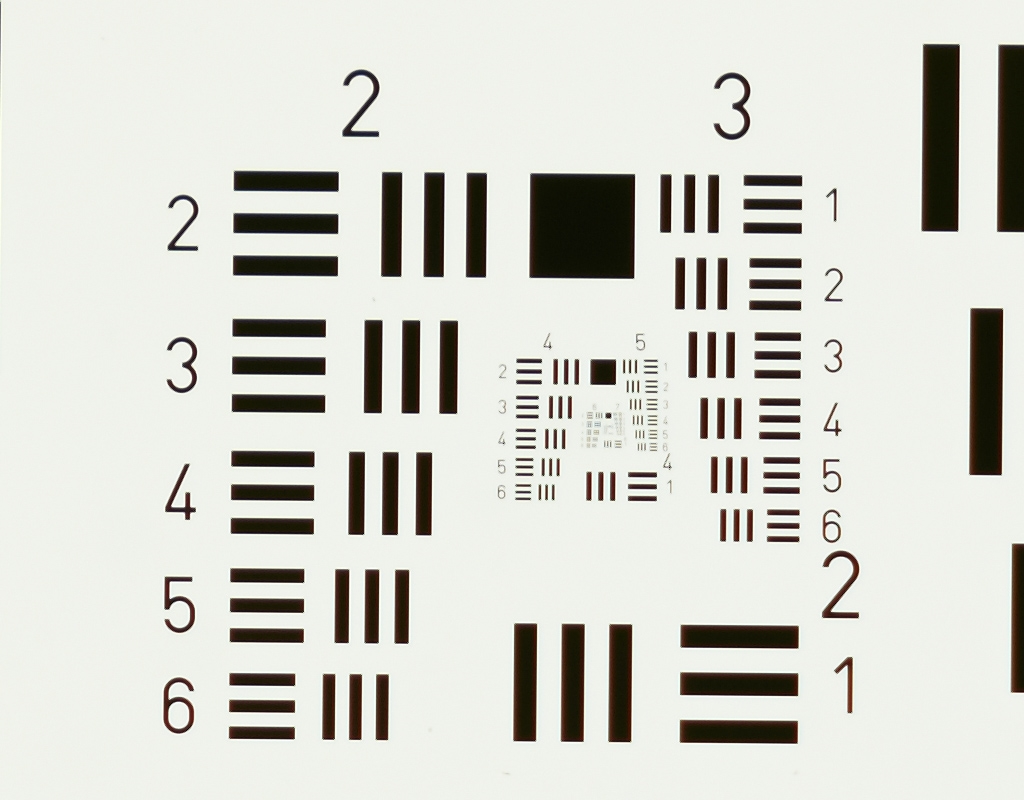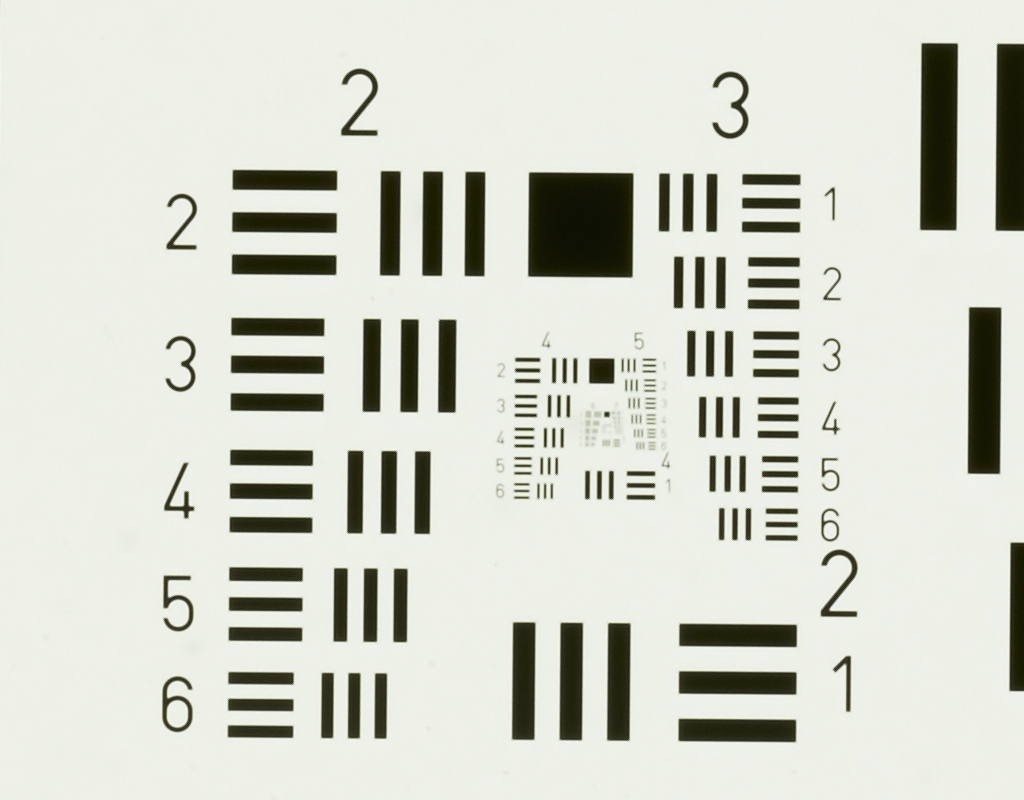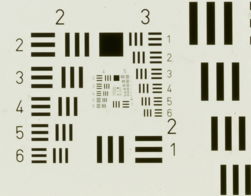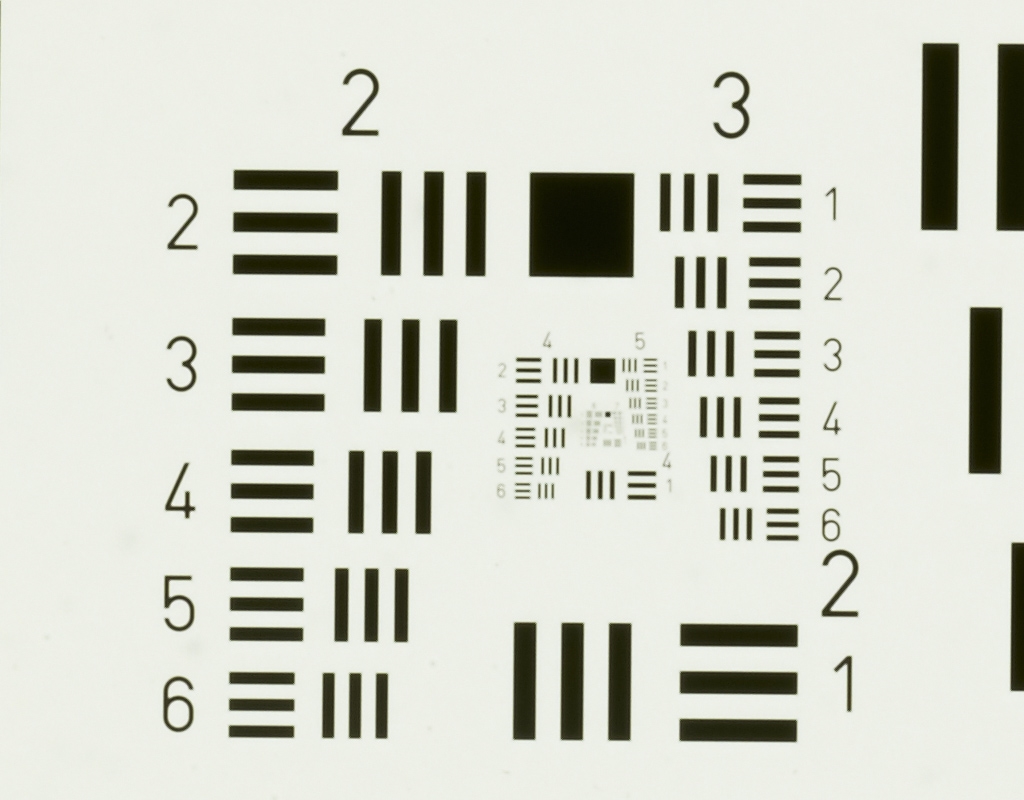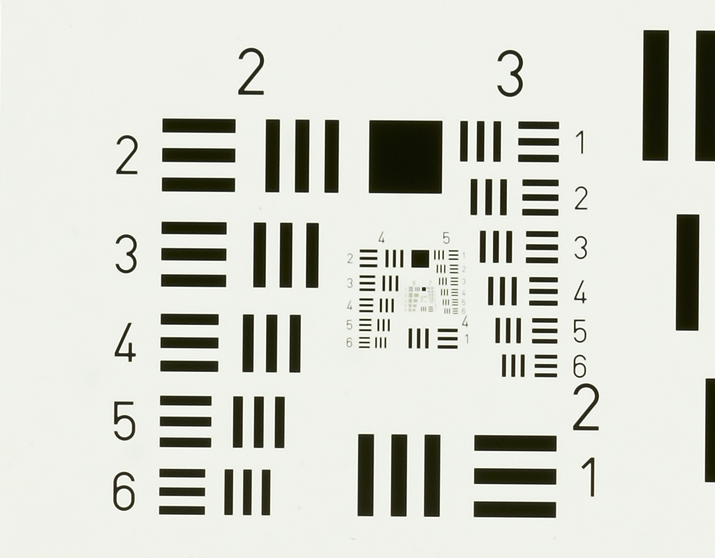 es gibt auch ein USAF 1951 Testdia von http://www.scandig.de/zubehoer/targets/usaf-1951-test-chart-scanner-aufloesung.html auf Folie.