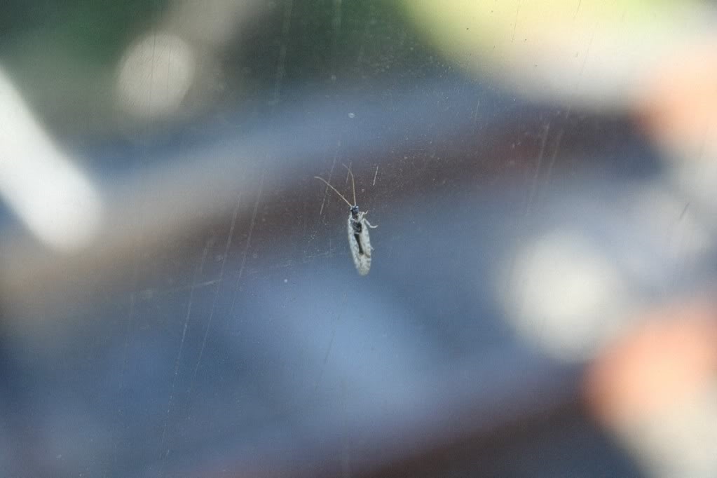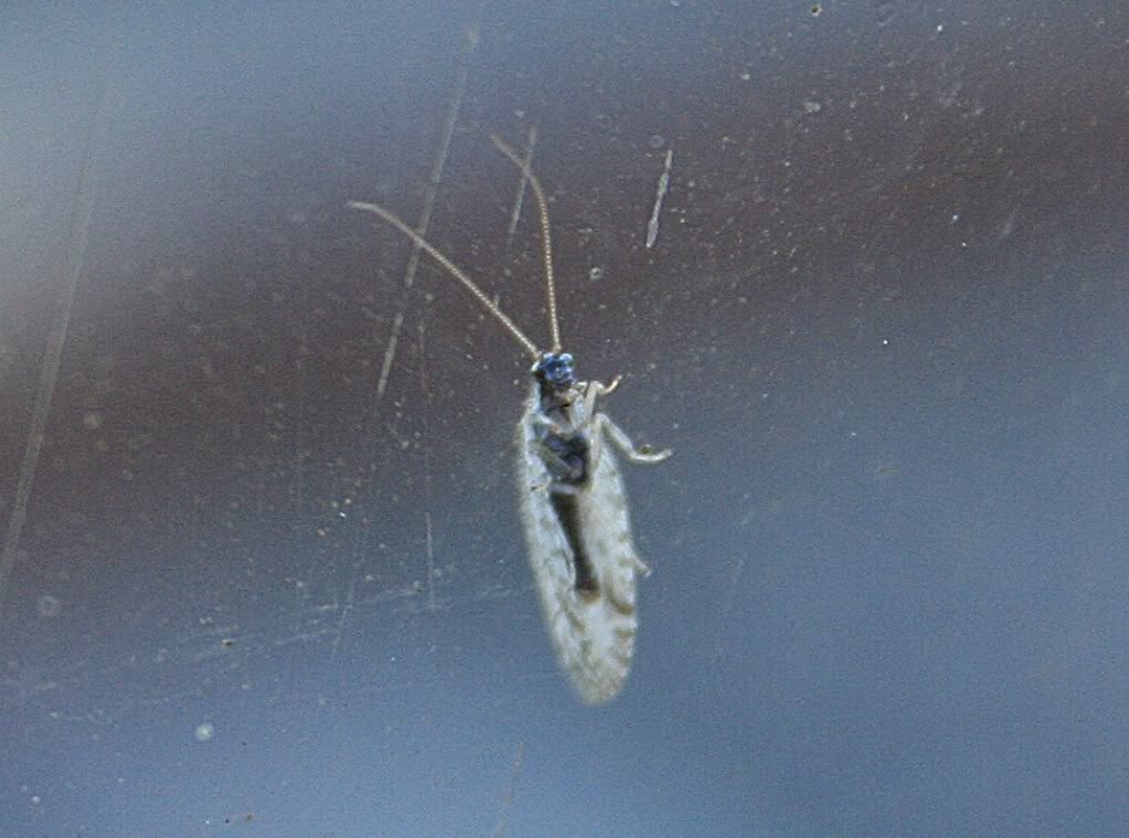 Ich saß neulich in einem Zug, bemerkte zufällig dieses Insekt an der Fensterscheibe, hatte auch zufällig eine Kamera dabei und machte diese Aufnahme. Sie ist nun nicht besser gelungen, aber viel Zeit zum Überlegen hatte ich auch nicht.