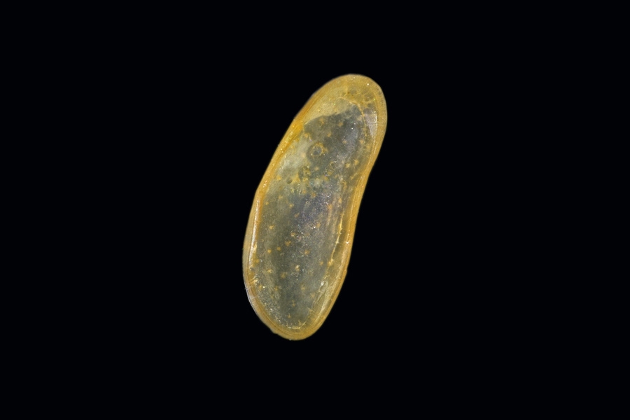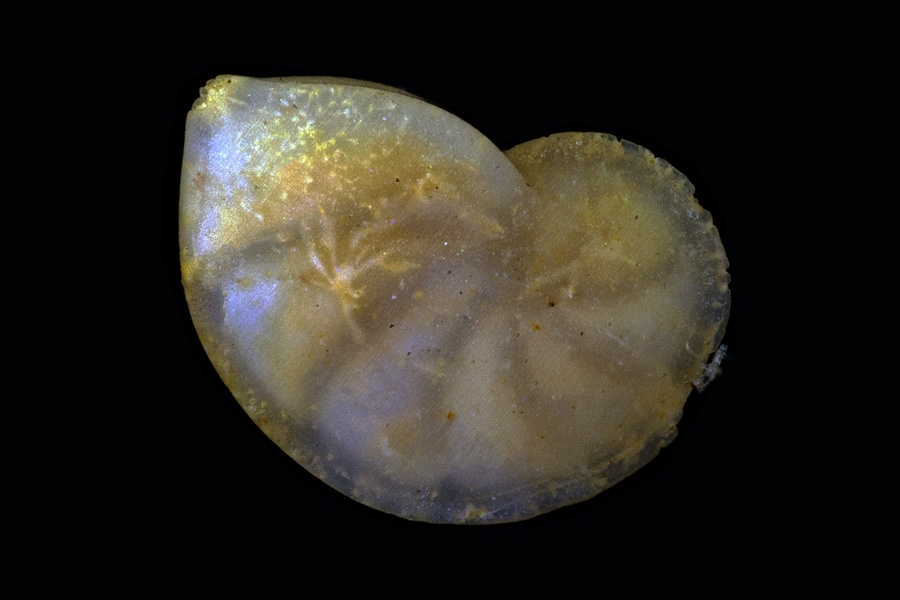 Bild 8 zeigt ein Bruchstück einer Foraminifere, wahrscheinlich Laevidentalina sp.