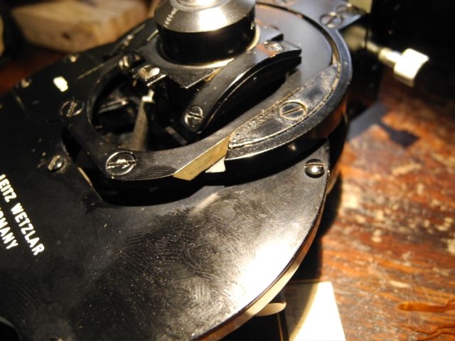 Das sichtbare Seitenteil deines Kondensorträgers hat nicht nur die zu sehende Schraube sondern auch zwei Federn - welche sehr gerne durch den Raum sausen falls die Schraube gelöst wird! ;D- ein wenig Korrosion zeichnet sich dort ja am Lack ab, weshalb vieleicht auch die Federchen angerostet und nicht mehr DIE Spannung auf diese Seite des Schlittenhalterung haben- Bei Bedarf hätt ich auch noch so einen Kondesorträgerkopf Modell Schlittenführung "rumliegen" ;D ;D ;D