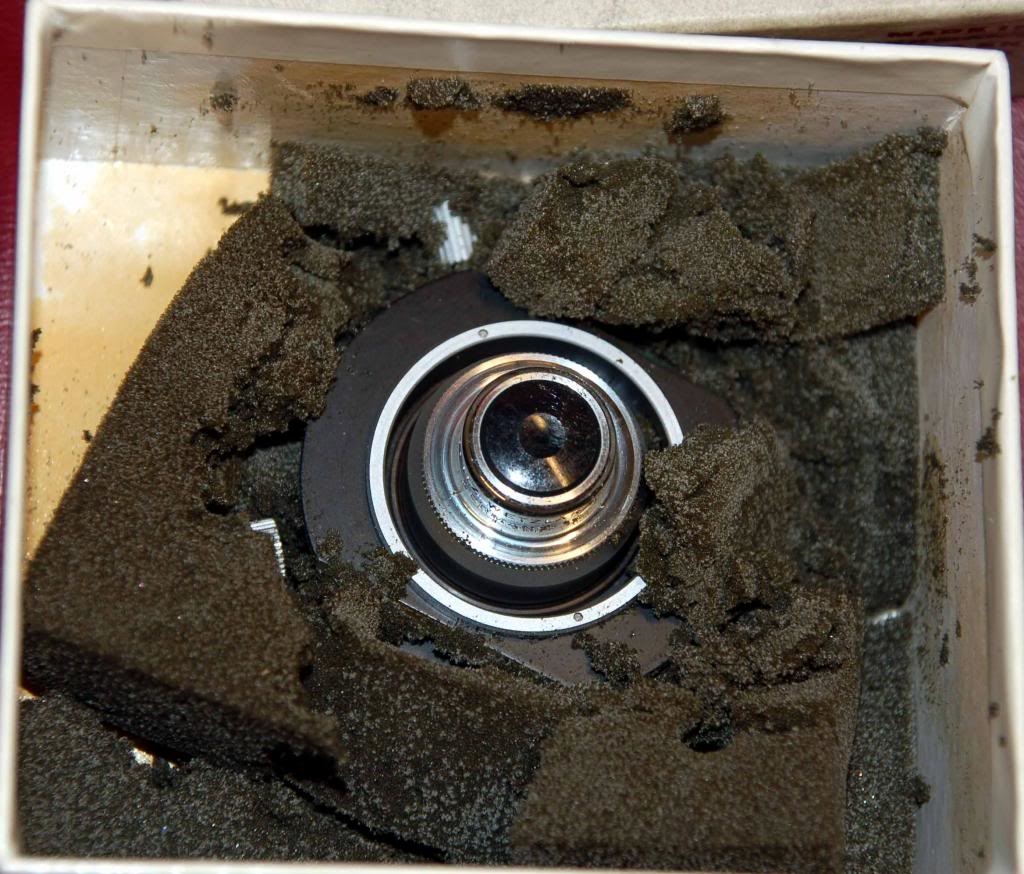 Auch ich habe von Olympus derartige Holzkisten und die Probleme mit dem Säubern. Da hilft nur Nerven behalten und reinigen, zum Glück war nichts in diesen Kisten, ich habe sie leer gekauft ...
