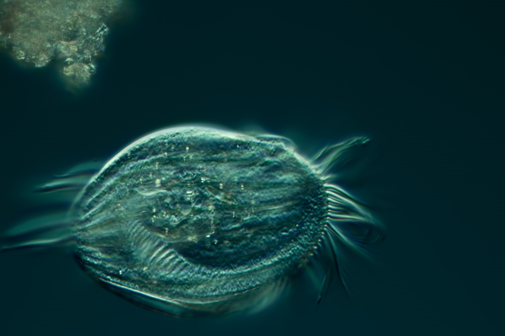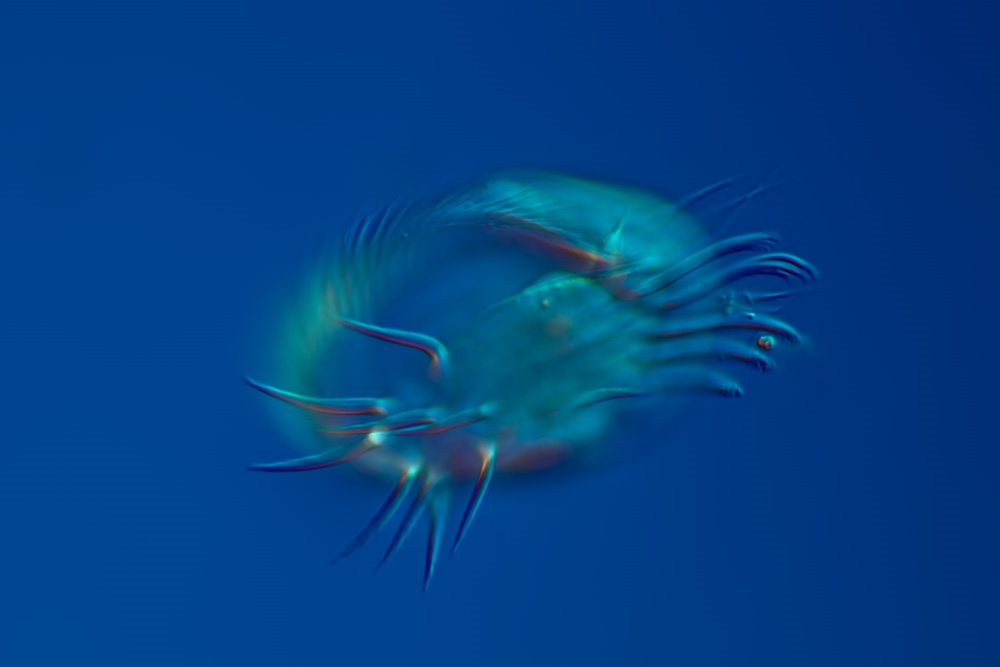 Da die Euplotes eine kugelige Form haben, konnte ist auch den Fokus nur auf einen kleinen Bereich z.B. nur die auf die "Lauffüße" legen.