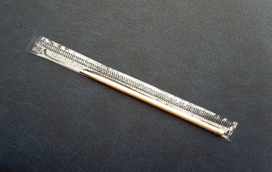 Ohne zu wissen, wer den jetzt erfunden hat (die Schweizer ???), habe ich diese edlere und hygienischere Form des Zahnstochers zum ersten Mal 1996 in Japan gefunden und gleich in einer Großpackung mitgenommen. In Deutschland hatte ich bis vor Kurzem nichts Ähnliches bekommen. Und was hat das mit Mikroskopie zu tun? Diese Stäbchen eignen sich auch sehr gut zur schonenden Entfernung dessen, was sich in Jahrzehnten des Gebrauchs in den Rändelungen diverser Fokustriebe oder sonstiger Schrauben absetzt (Staub, Handschweiß, Immersionsöl, etc.).