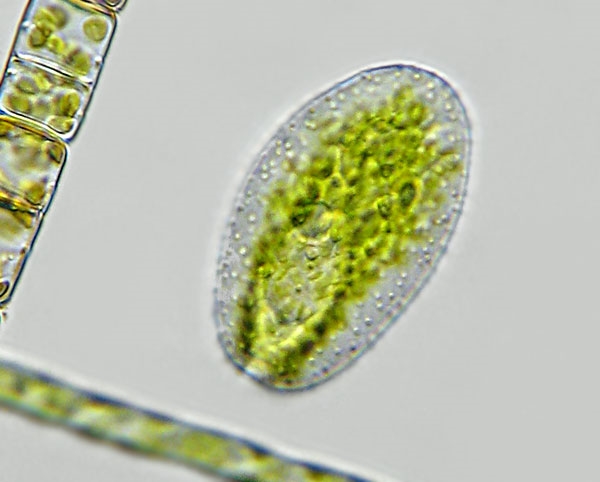 da ich bei den grünen Wesen teilweise Geiseln erkenne, könnte es sich doch um Raphidophyceae (Vacuolaria, Gonyostomum o.ä.) handeln, oder?