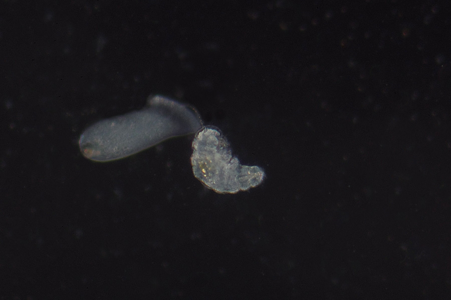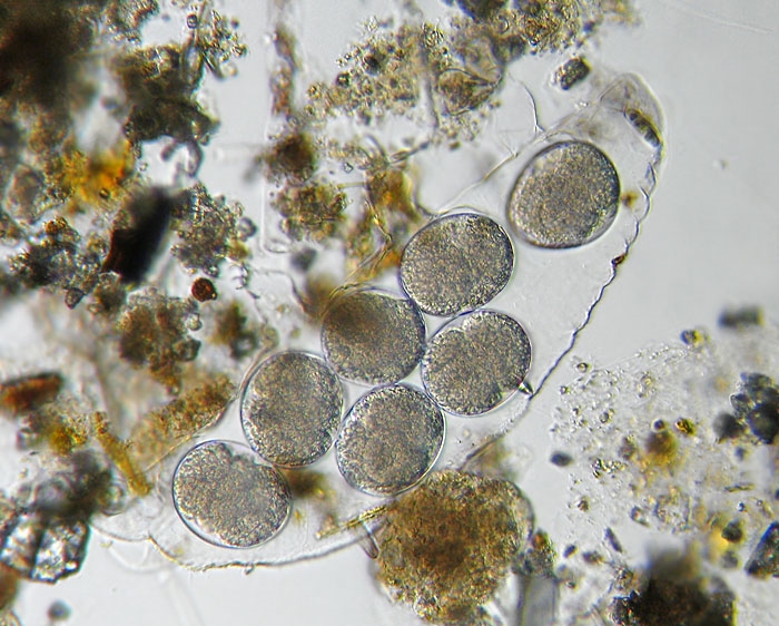 Die sich bis zu 6x in ihrem Leben häutenden Bärtierchen, legen ihre Eier gerne in der abgestreiften Hülle (= Exuvie) ab.