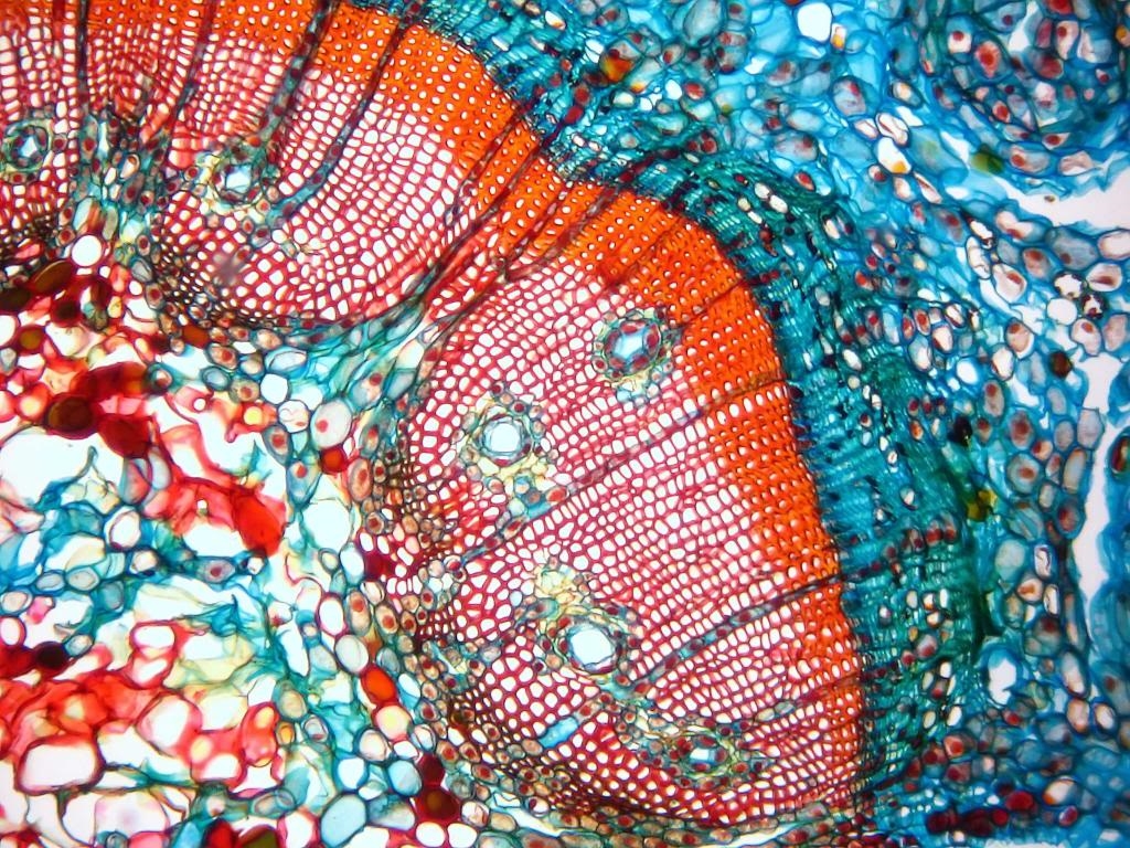 Nun habe ich keine Ahnung, in wie fern man die Aufnahme eines Pflanzenschnittes überhaupt mit einer Tümpelprobe vergleichen kann, ich möchte auch nur zeigen, dass diese Gerätekombination einigermaßen harmoniert.