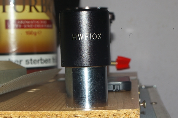 Ich habe, mangels anderer Möglichkeiten, ein Zeiss-Winkel K8-Okular benutzt. Als KPL habe ich nur ein 12,5er, das ich noch nicht getestet habe.