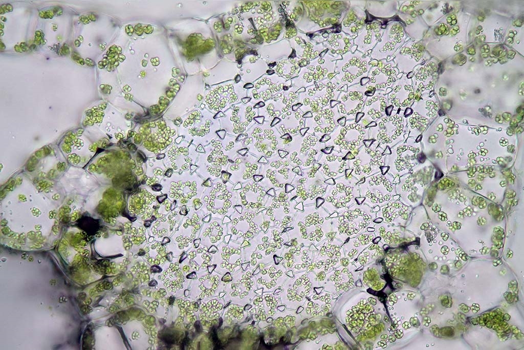 Die hell leuchtenden Dreiecke sind mit Luft gefüllte Interzellularräume.