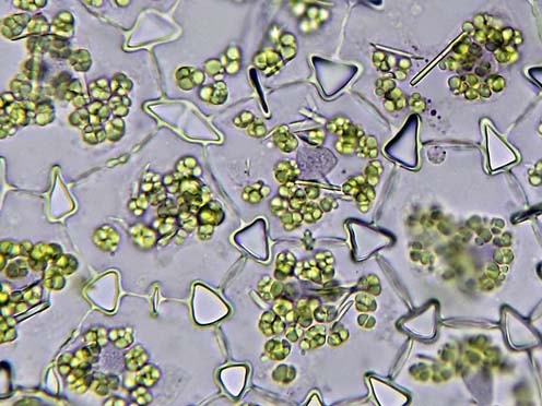 Solche Caliumoxalatkritsalle finden sich z.B. bei Nymphaea tetragonata oder auch - ganz andere Ecke - Welwitschia mirabilis zusätzlich auf oder in den Zellwänden der Parenchymzellen.