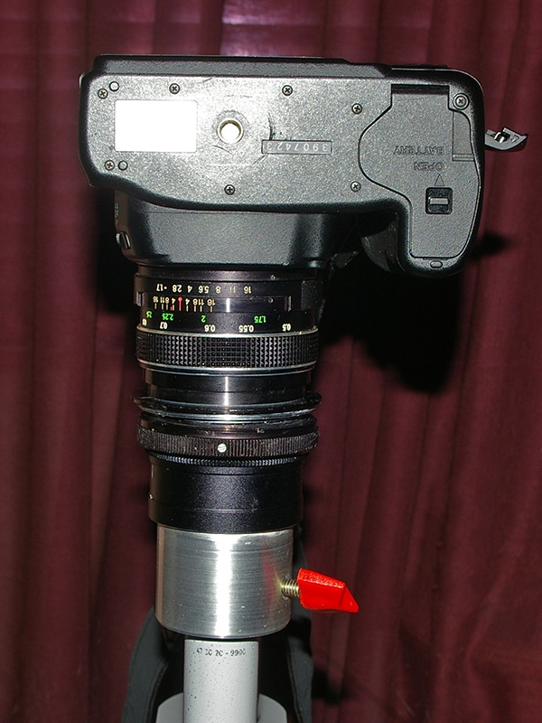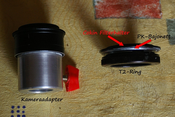 Für den Anschluss ans Mik. diente eine alte, defekte Kamera mit PK-Bajonett,