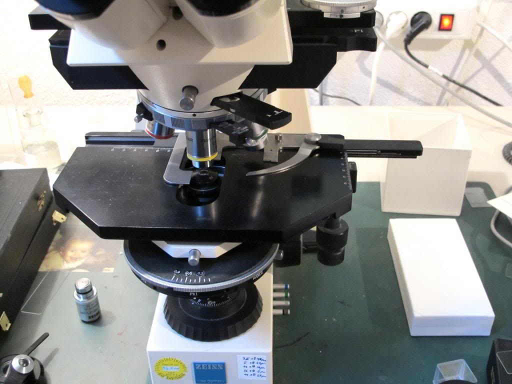 Dank an Bernd ("Normarski") der wie immer präzise gearbeitet hat und meine Vorstellungen so modifiziert hat, dass das neue Wunderwerk auch perfekt ist. Ist immer von Vorteil, wenn einer ein guter Mechanikus mit sehr gutem Maschinenpark ist und dann auch noch Ahnung von der Mikroskopie hat.