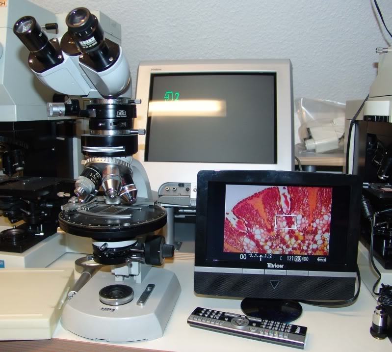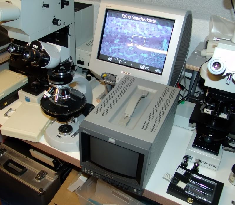 3) ich einfach nicht am Rechner mit dem Mikroskop arbeite! Ich bevorzuge die Auslösung über Fußschalter und die Speicherung auf Karte. Da ich nicht ständig Mikrofotos anfertige, nervt mich das Hantieren mit den Karten nicht.