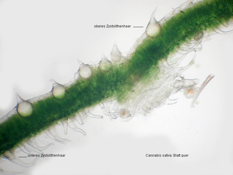 Ich habe mich mit Hans-Jürgen abgesprochen und für ihn ist es in Ordnung wenn ich dieses Bild mit den eindrücklichen Zystoliten-Haaren bei Cannabis sativa zeige. Sie ermöglichen unteranderem Pflanzenmaterial C. sativa zu zu ordnen.